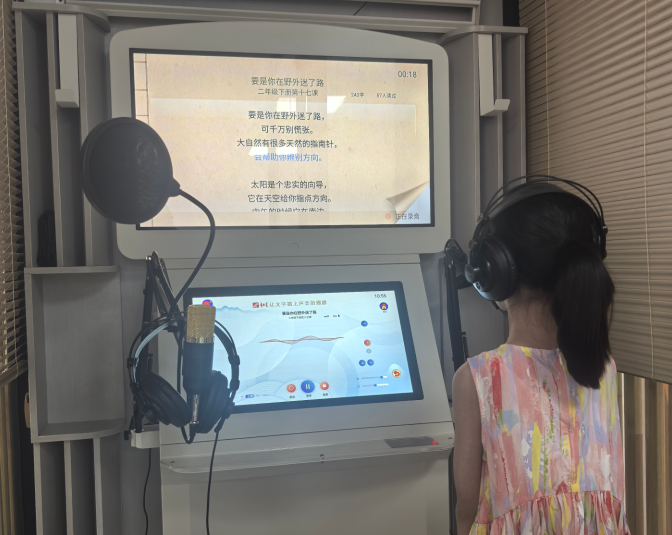 在智慧服务升级方面,馆内新增智能AR课堂系统、中华诗词学习机、益智互动国学桌、智慧朗读亭等数智化设施,将科技元素与传统阅读深度融合。这些智能设备为读者打造了沉浸式、互动式的阅读体验,尤其受到青少年群体喜爱,让阅读变得更有趣、更便捷。同时通过微信公众号等线上平台开展图书推荐、有声阅读、线上展览等活动,打破时空限制,让市民足不出户即可“云端充电”。