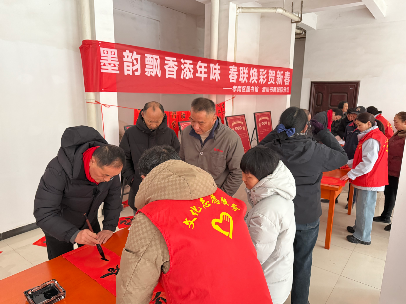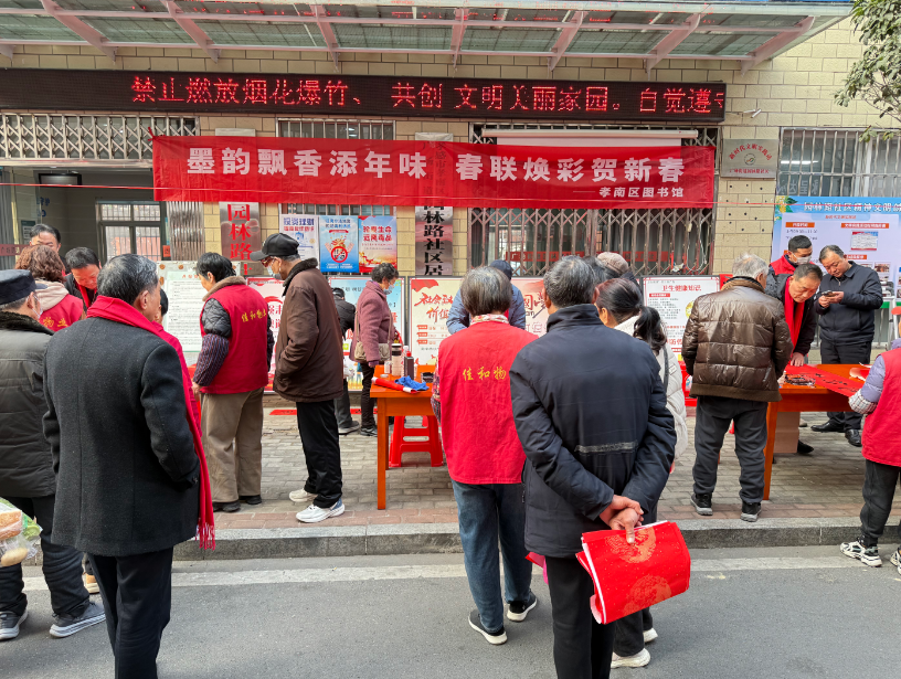 新春将至,年味渐浓。为弘扬中华优秀传统文化,营造欢乐祥和的节日氛围,2026年1月16日至17日,孝南区图书馆先后走进园林社区、胡邱社区,开展以“墨韵飘香添年味 春联焕彩贺新春”为主题的“迎新春、送春联”活动,为社区居民送上满满的新春祝福,也为“孝爱之城”增添了浓浓的文化年味。